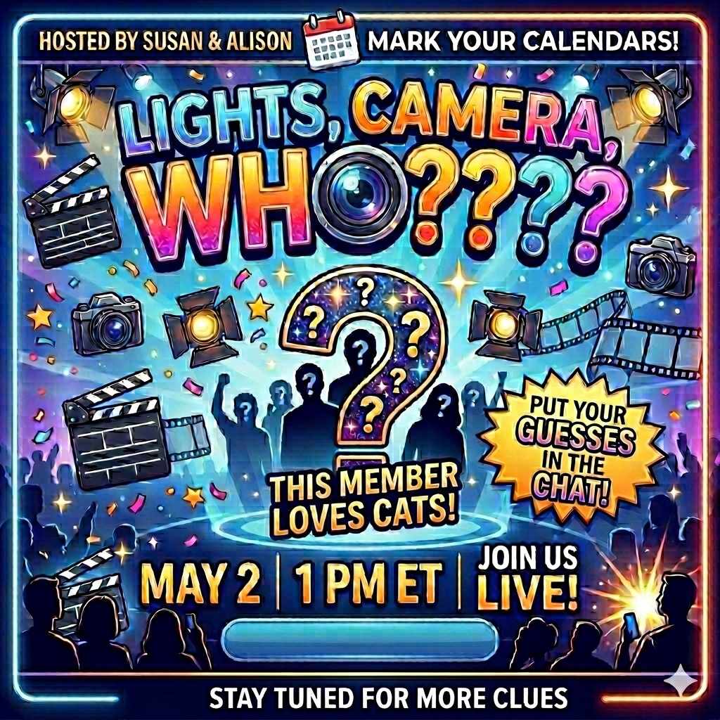 Our next Lights, Camera, Action is comingâand weâre keeping you guessing! This mystery member has a big heart⌠and a love for cats đž