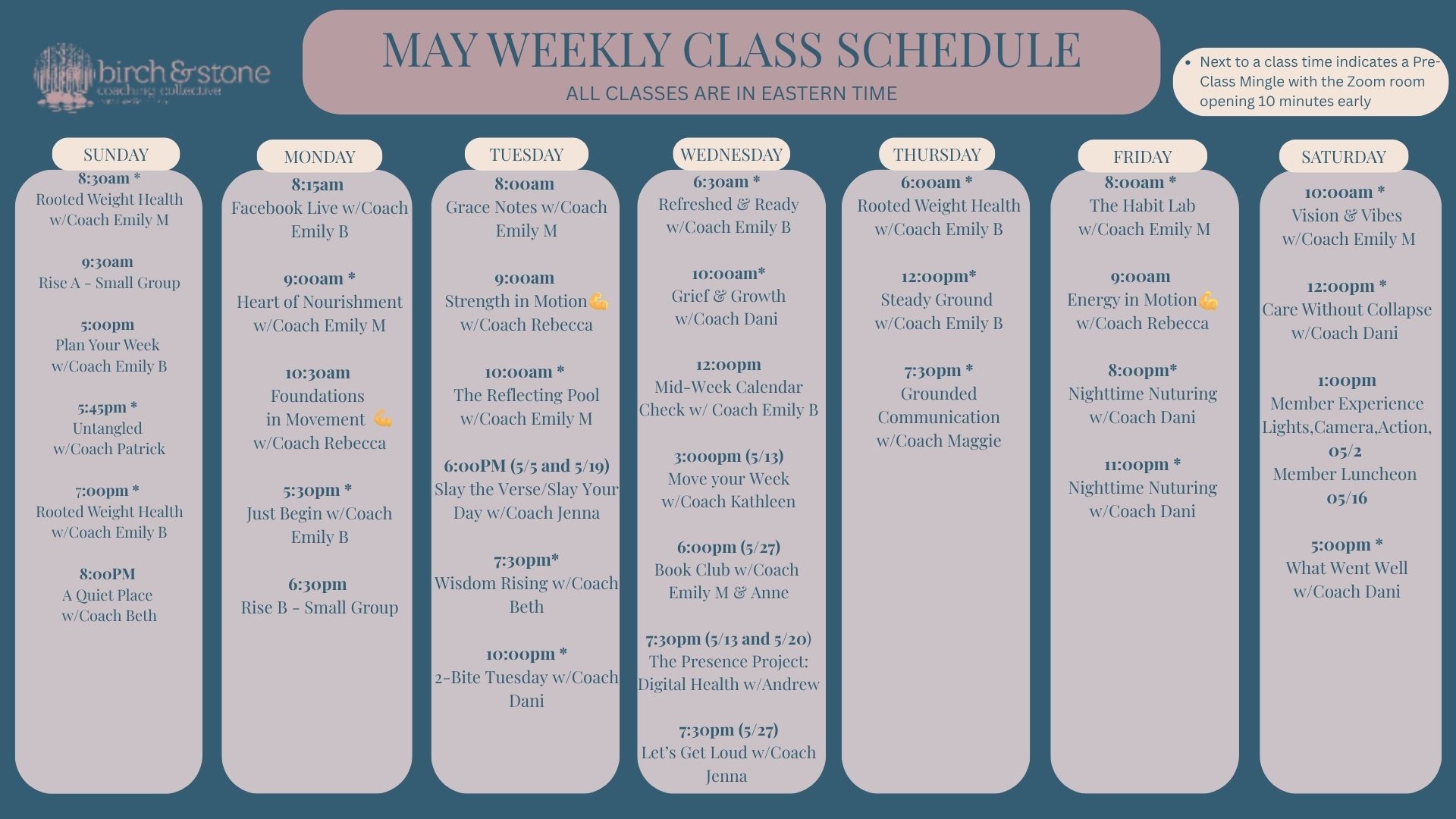 Our May 2026 Class Calendar is here! Check out your favorites and new classes as we head into May!